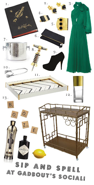 When Gadabout's Hanna Nation offers to regale you with bounties of booze and board games, you must simply never send regrets! She styles out our Stanton bar cart with fiercely chic style and serves up devilish concoctions aimed to please the most enthusiastic of pleasure seekers! Dash on over to her Sip & Spell social and hold on to your highballs-- spelling will become quite the chore after sips galore!
